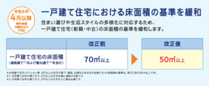 令和8年4月以降物件検査申請分から、フラット35の一戸建ての床面積要件が 70㎡以上 → 50㎡以上 に緩和されます。
